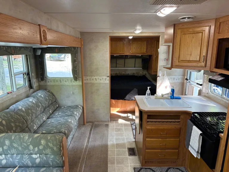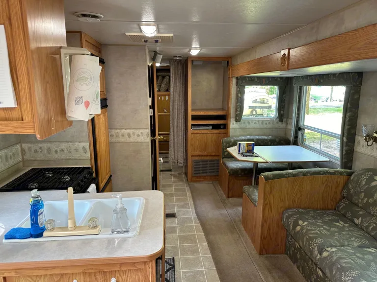 This is a budget friendly rental camper, my family has used this for many years and is ready to let your family enjoy it. This roomy camper is ready for a couple who wants to enjoy a vacation with plenty of space or for a whole family to enjoy a fun-filled week. This camper is fully equipped with a fridge, stove, oven, dining table, comfy couch, and much more. The AC unit works very well on those hot days, and the heater keeps you warm on those cool nights. This camper also has a big awning to keep you cool while enjoying the outdoors.Ce qui est inclusI will provide fresh sheets for all beds, and board games for the rainy days.RecommandationsI would recommend bringing blankets and pillows to stay nice and comfy, and anything else that will make you feel at home away from home.