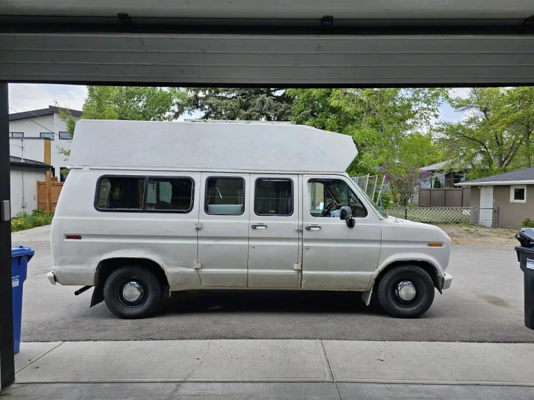 Meet Gertie!Gertie is a 1988 Ford E150. Sure she's got some bumps and bruises but those are just badges of honour from many many adventures!Gertie has everything you need for your adventure! She's got a easily set up bed big enough for 2 plus your furry friend which also converts into a bench, a chair and a table. The bench also works flipped out the back doors for comfy star gazing!She has a full stand up shower and camping toilet, sink and asolar panel up top to keep you going wherever your adventure takes you.She also comes with all the equipment needed to make all your favourite camping meals;
