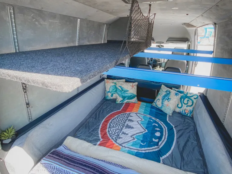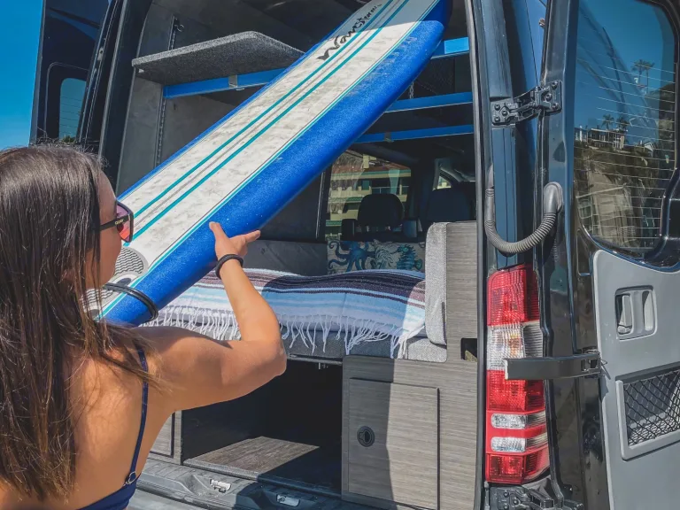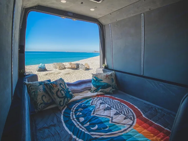 Just like the transformer, this Sprinter can be configured to fit your travel needs…Need five seatbelts and bunk beds to sleep 3 kids and 2 adults, no problem.Just the two of you and want more room for gear and a bigger living room, we can do that too…This van was professionally built out by American Van Works in Stanton, CA.It has a super comfortable full size queen bed that can also convert to a booth to hang out or eat in. If you need to sleep more, it can convert into a queen bunk.Plenty of storage for gear, surfboards, paddle boards, bikes or anything else you need for your adventure.We include all the bedding, pillows, blankets you will need for your trip at no additional cost.You can also add on our camping/beach package which includes up to 5 camping chairs, a large sand mat, a sun canopy, a table, a camping stove, pot, griddle, cooking utensils, plates, bowls, cups, 2 surfboards, and a bike rack for five bikes.This van is equipped with outlets and USB ports throughout, and enough auxiliary power to last 3 days without starting the engine.We also created a video series that explains and makes it easy to use all of the vans features, even if this is your first Van Life Trip!Be sure to reach out if you have any questions.We’re excited for you to enjoy your next adventure in the “Optimus Prime” Sprinter!Ce qui est inclusWe include all the bedding, pillows, blankets you will need for your trip at no additional cost.RecommandationsSo Cal and the “Optimus Prime” Sprinter is the perfect combination for a super fun adventure!Some local camping gems are San Elijo state beach - probably the most popular in the area. It’s packed with kids playing and riding bikes. There’s so much to do at this beach: surfing, fishing, sandcastle-making, and swimming. Plus, Seaside Market is right across the street. Cardiff Crack (tri-tip) anyone?South Carlsbad State Beach Campground- this beach is great for swimming, surfing, skin diving, and fishing. The campsites have picnic tables and fire pits, and the bathrooms are equipped with showers. The on-site camp store has provisions like wood and ice, and Carlsbad is just a few miles away if you forget something or want a break from camp food.Cuyamaca Rancho State Park - Sleep 5,000 feet above sea level in an oak forest with green meadows and rushing creeks in this mountain park 15 miles northeast of Alpine. While the Green Valley Falls campground is closed through August, the Paso Picacho Campground, with fire rings, flush toilets, and pay showers, is currently open. There are several good options for hiking that leave right from the campground, and nearby Lake Cuyamaca has fishing and boating.Indian Cove Campground - Set up camp among Joshua Tree National Park’s signature otherworldly boulders and rock formations. This campground has the basics—fire pits, picnic tables, and outhouses, but no water or camp store. Cell phone reception is spotty or nonexistent, so plan ahead. If you’re willing to rough it, it’s worth it. You can find a secluded spot hidden among the red rocks, explore Joshua Tree during the day, and take in the incredible celestial views at night.Bow Willow Campground - With just 16 campsites, this is a more secluded getaway within the southern section of Anza-Borrego Desert State Park. It makes things easy with picnic tables and ramadas, but there’s no running water. The main highlight is the epic stargazing, but daytime views of the open landscape and mountains are equally impressive. Park or pitch a tent right up against the rocky hillside to soak up gorgeous views. Spring brings wildflower season, but avoid a trip in the summer, when it’s very hot.This is just to name a handful of the many amazing places to explore in Southern California. Autres points à signalerPets welcome!