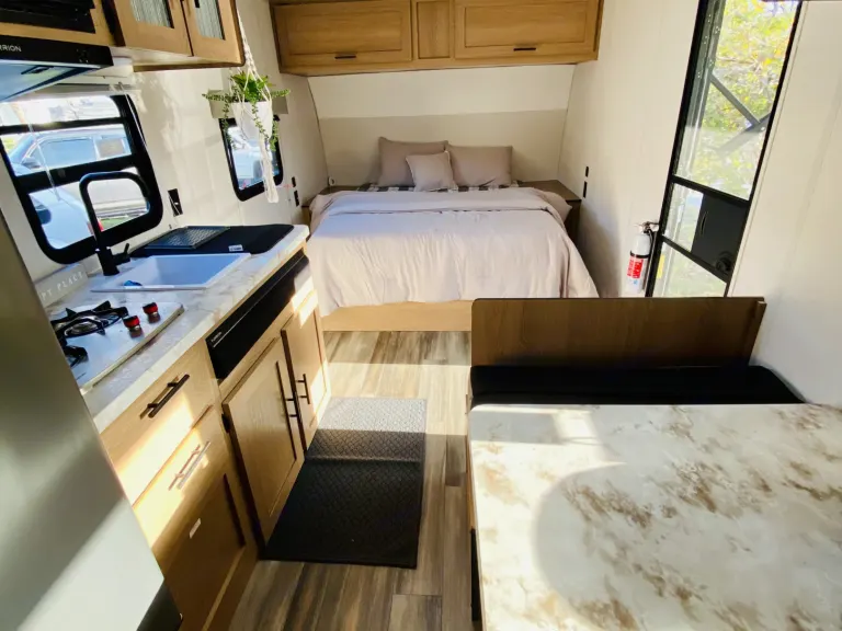 Light weight for easy travelingThis travel trailer is ready for an adventure with five to six of your closest friends and family. You can be sure the kids will argue over who gets the top bunk with double-size bunks. Lots of convenient space in the oversized pass-through storage. The trailer includes memory foam toppers on all beds so that you can get a good night's rest each night. Bedding (linens, pillows, towel...etc) provided as an add-on.We provide the following w/ the rental:
