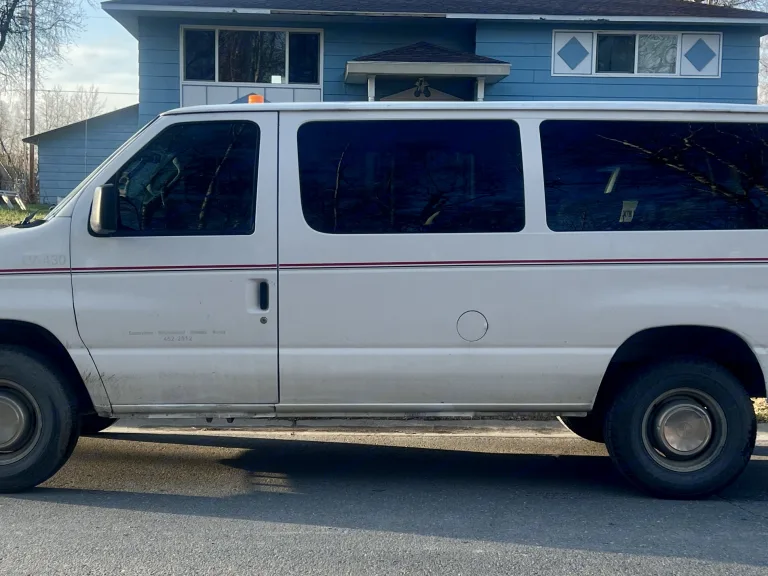 9 passenger van with lots of cargo space and roof rack. Not garage parking.