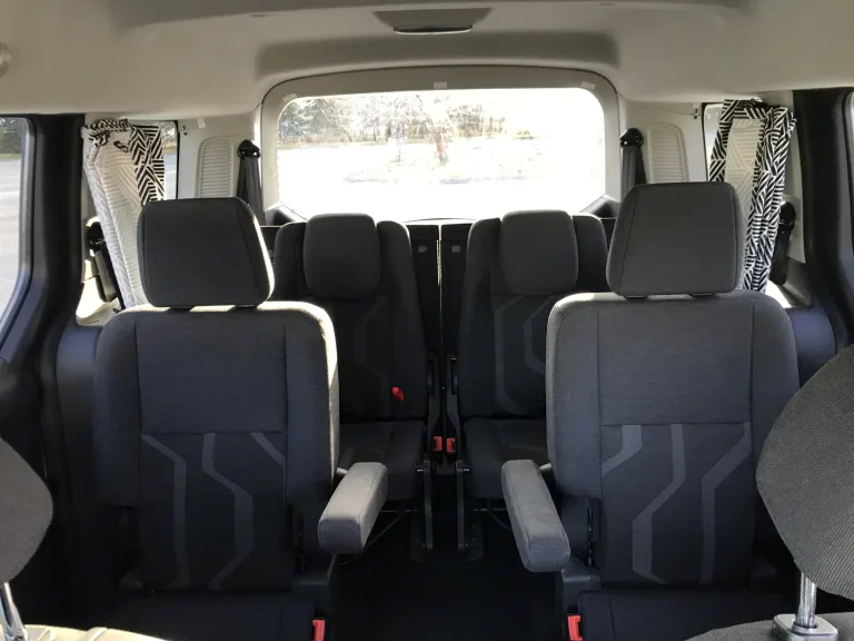 Ford Transit Connect. Seats up to 6! It gets good fuel mileage and makes for a good rental to see Alaska! Rear seats all fold down, has curtains for all windows. Comes with backup camera, Bluetooth radio, and a milepost guidebook.