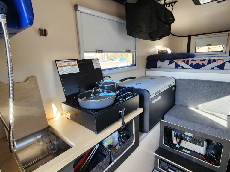 Enjoy off-grid comfort with solar power, a diesel heater, and a convenient kitchen.