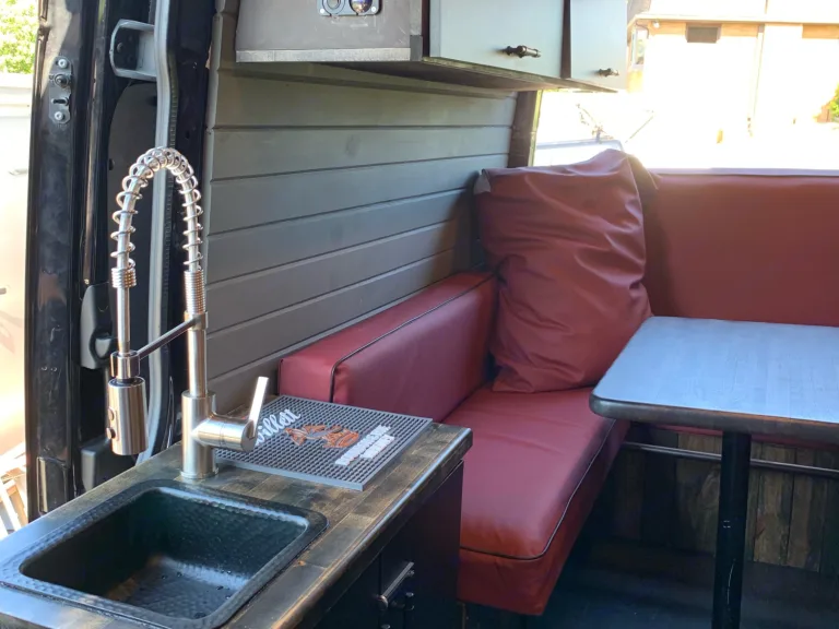 Comes equipped with water proof flooring, sink / cooking countertop, custom bed - couch with a table that seats 5, mounted TV on a swivel mount, air conditioning, Diesel heater, and plenty of storage in the garage… Also outfitted with custom wood pallet ceiling, with multi color lighting. Comes with easy access pantry / food area, also installed are two 200 watt solar panels to help on those long trips with no plug in station. She rides like a beauty and is the perfect traveling , machine. Ce qui est inclusComes with fresh sheets, eating utensils, generator, fridge stocked with water, induction cooktop, pots/pans. Will be available for pickup anywhere within the Pugh area. RecommandationsThis Van has been all around the country, from the flats of New Mexico to the hills of Maine. This conversation van is great for comfortable travel, or out door camping in style. There’s nothing better than pulling up to a lakeside, setting up some chairs and a fire, cooking a little meal while your favorite is playing out of the built in speakers. Autres points à signalerThis is a beautiful beast that I’d like to keep as nice and pristine as possible. Please treat her with respect as if it were yours… other than that, have a ball!!