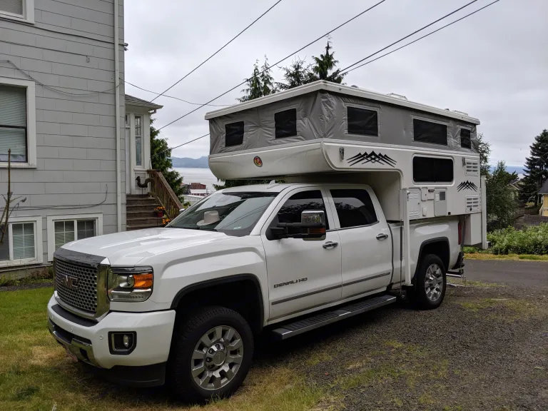 This barely-used Guanella truck camper is compact and efficient, giving you everything you need for your adventures. Queen size bed plus dinette can sleep 4; additional bunk can be added for the little ones. Pop-up canvas sides are easy to raise and lower with the Hallmark lift system. Kitchen includes sink, 3-burner stove & oven and refrigerator. Integrated solar system means you can plug in this beauty OR run it off grid. Propane heat, roof-mounted AC, fan and lots of windows. Back-up generator and fuel for peace of mind. Locked safe and roof-mounted tube rack for fishing poles make this a great set up for outdoorsmen. Rental includes basic linens and kitchen supplies.The 2017 GMC Denali truck has integrated bluetooth, backup camera, leather interior, and all the bells and whistles to make your adventure a dream.Please note: this camper is NOT to be used at Burning Man. (We are Burners; we *will* know if you attempt this). The dust is damaging to the paint, metal, rubber seals, and destroys all the filters in the truck and camper, requiring replacement. Please, do not make a booking request related to BRC.