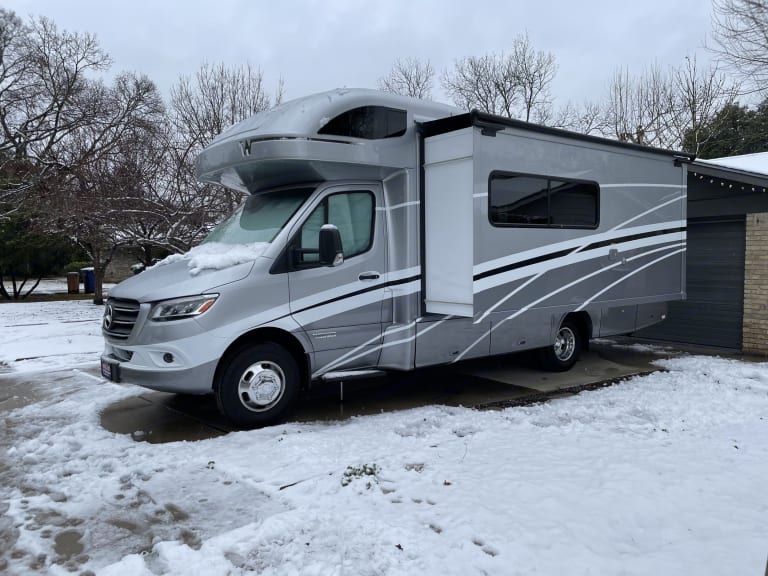 Experience luxury on the road in our 2021 Winnebago View. This RV is perfect for couples or small families looking to explore the great outdoors in style and comfort. Great for beginners to expert long term RVers like ourselves. With its sleek exterior design and modern interior amenities, the Winnebago View is sure to impress.Inside, you'll find a spacious and well-appointed living area, complete with a fully-equipped kitchen, comfortable seating, and a dinette that converts into a bed for additional sleeping space. The master bedroom features a cozy queen-size bed with Tempur-pedic topper, plenty of storage space, and a flat-screen Samsung TV for your entertainment.The Winnebago View also boasts a full bathroom with a shower, toilet, and sink, as well as a separate vanity area with a sink and mirror. Other features include a large awning for outdoor living, a built-in generator for off-grid adventures, and a solar power system for added convenience.This RV is easy to drive and maneuver, thanks to its compact size and nimble handling. It's also equipped with advanced safety features like lane departure warning, collision avoidance, and adaptive cruise control.We upgraded the already fully loaded Winnebago View for our digital nomadic lifestyle. Includes amenities for off grid and even freezing conditions: lithium batteries, extra solar panels, equipped with tank heaters, heat tape and other needs for freezing temperatures. Also upgraded the comfort for long or short trips: Tempur-pedic mattress topper on the Murphy bed, router and WiFi with multiple phone plans that load balance to ensure you stay online, modern decor, outdoor fireplace, and more!- As of April 2025, the house door is broke so you can only use the cab doors. Ce qui est inclusWe provide all the essentials you need for a comfortable and enjoyable stay, including bedding, towels, internet, and kitchen supplies. Simply pack your bags, your groceries, your family and hit the road - we'll take care of the rest!Autres points à signalerPlease note that this RV: