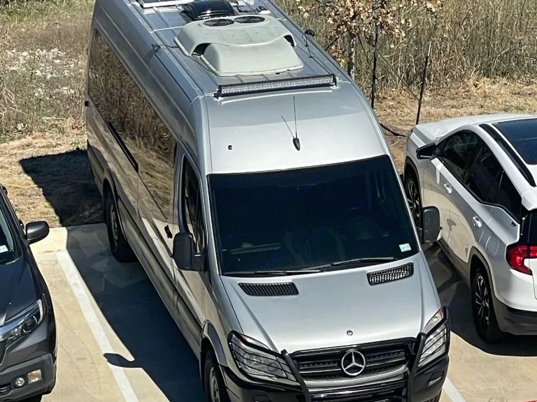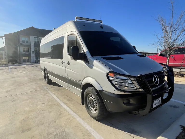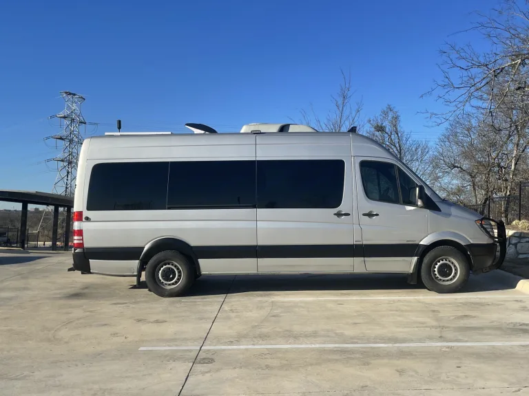 This recently converted van located in Southeast Austin is chock full of goodies. SO many that I've detailed them further below.The van is a 2012 Mercedes totally built out in the last year. Well maintained with a number of aged-out parts recently replaced.The vehicle is 24 feet long, from the bullbar to the rear step, and 9.5 feet tall, from the bottom of the tires to the top of the rooftop A/C.