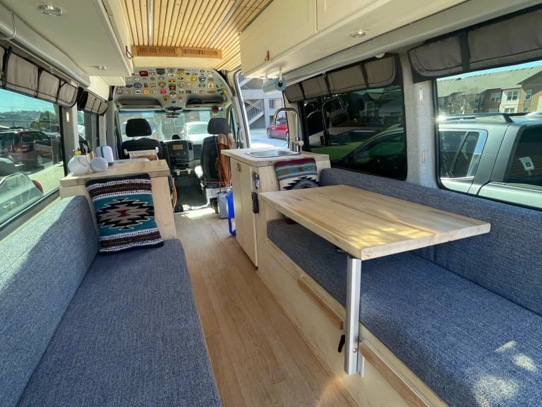 Mercedes Sprinter w/Couches -> Queen Size Bed, Table, Fridge, WiFi & More