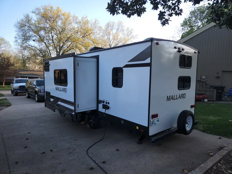 A Wonderful 2022 well maintained 30' Mallard Travel Trailer, very clean, well kept, and maintained. Sleeps up to 8. Has an AC/furnace, stove top, oven, refrigerator (gas/electric), hot water heater (gas/electric), shower/tub, outdoor shower, flushing toilet, plenty of storage, outdoor kitchen, and much more. Load Leveling/Anti Sway tow bar and hitch included. This trailer is 1/2 ton or SUV towable. Brake Controller is required and not provided.Very comfortable for a family get away, hot showers, functional kitchen, and clean.Come and try the RV life for a weekend.Any extras just ask?Please return in clean condition with tanks empty. There will be a $50 cleaning fee and/or a $50 tank fee for unsatisfactory conditions upon return. Comes with everything needed to fill/empty tanks and cleaning supplies. No Pets or Smoking Allowed.