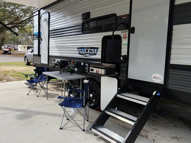 Bunk beds for kids or small adults. Both beds are full size.The kitchen has enough space for cooking and we provide all the utensils to cook a home made meal. 11 Cu Ft. refrigerator. It also has a big pantry with plenty of storage.The bathroom features a raised skylight shower for taller guests.Smart TV + Bar sound + Fireplace !The versa lounge feature of this unit offers a 3 seat sofa and a big U-Shape dinette but it all can be converted into one big L-shape lounging area and also into one extra double bed for kids.The best for the end: In the exterior you will find one small fridger to keep the drinks ice cold while you cook lunch in a propane griddle listening good music from the exterior speakers under the largest awning of its kind. Camping could not be more easy, fun and luxurious!We will delivery and set up within 100 miles range or might be delivered to Fort Wilderness at Disney, for further requests you may contact us. No self-tow.For a little extra cost we offer the propane grill + 4ft table and 2 camp chairs. One tank of portable propane for this grill will be included.Enjoy your time and please leave the camper the way you found it. Think about this camper as if it was yours and help us keep more families enjoying the magic of the camping world.Remember the rules: No smoking, no pets, no parties. No self towing. Ce qui est inclusIncluded in your rental:Linens and blanket for the master queen bed. 4 Pillows.