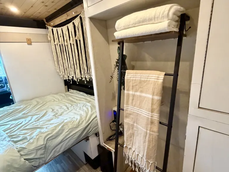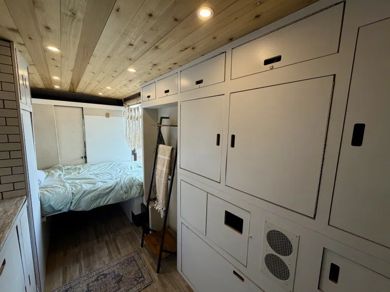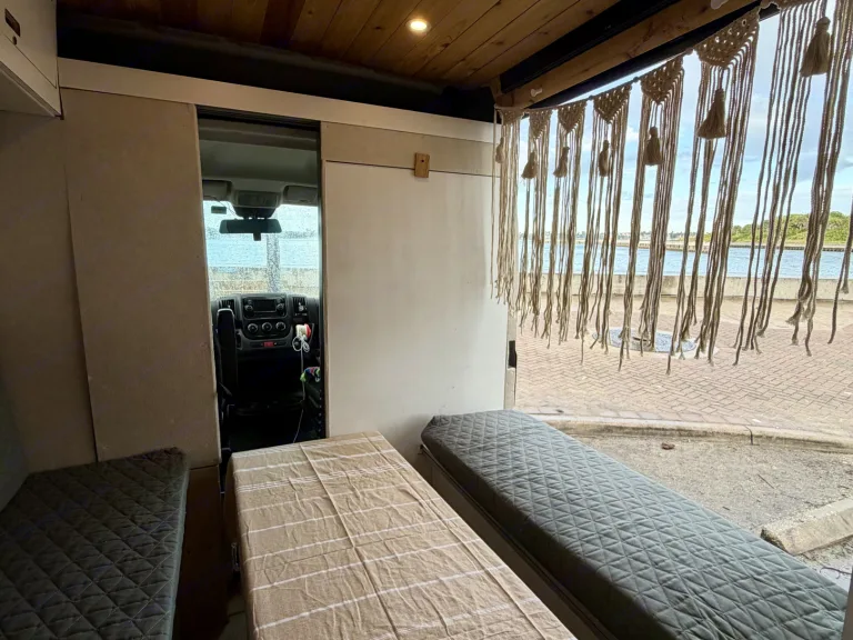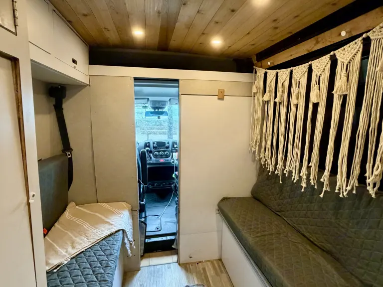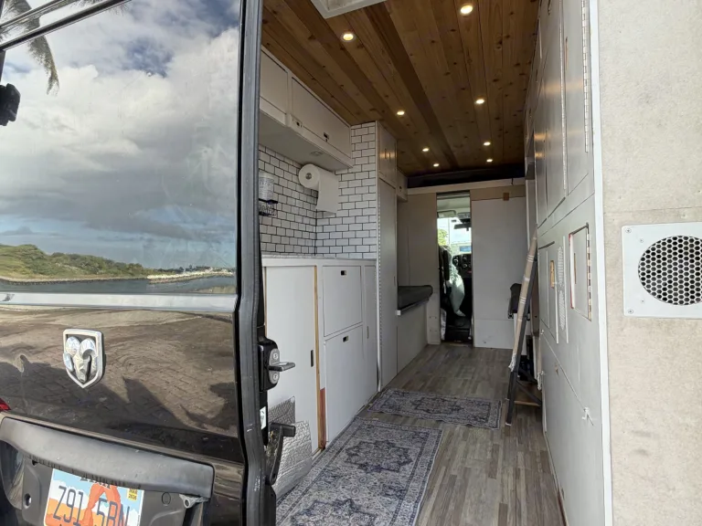 Escape to the coast, springs, and sunshine in this cozy, beachy boho camper van designed for easy Florida adventures. Whether you’re headed to the Keys, a spring weekend, or a spontaneous beach getaway, this van is set up to feel like a tiny home on wheels.The interior features warm wood ceilings, clean white cabinetry, and thoughtful styling that makes the space feel calm, comfortable, and inviting. It’s beginner-friendly, easy to drive, and fits in regular parking spaces.Sleeping & ComfortDinet conversion full bed and extra cot for your friends!Includes windowless swamp cooler to keep you cool in the heat!Cozy interior with dimming lightDesigned for relaxed nights after long beach or adventure daysSimple, functional kitchen setup for easy mealsCookware (hot plate, blender,) dishes, and utensils includedPlenty of cabinet storage to keep things organized\Solar poweredPerfect for beach days, summer nights, and festival weekends.Florida beach road tripsSprings and state parksWeekend getawaysFestivalsCouples or solo travelersFirst-time camper van rentersEasy & Stress-FreeEasy to drive and maneuverBeginner-friendly setupClear instructions provided at pickupOptional delivery available (airports/campsites upon request)Pet friendly! Bring your adventure buddy along!Ce qui est inclus•Windowless Swamp cooler