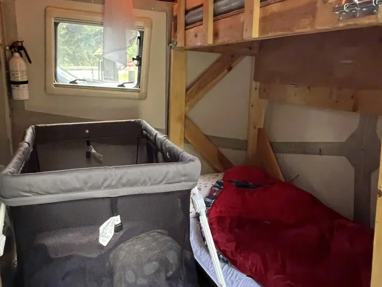 - Hanging twin beds (2) can be used for storage or sleeping.