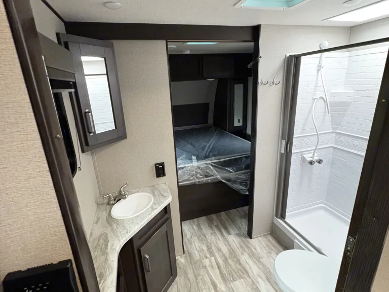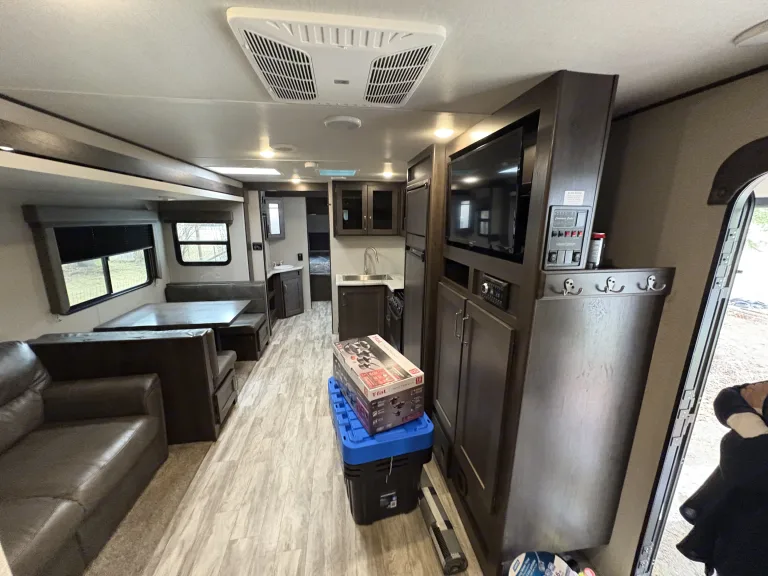 This large unit is perfect for families both large and small. This Luxurious model has a very modern feel with all the amenities you need to have a relaxing and comfortable weekend away. Featuring an outdoor kitchen with helps make clean up a breeze, and keeps you outside in the great outdoors. Sleeps up to 10 people. Has a private bunkhouse with 4 bed and a bathroom, great to get a little privacy from the kids. Also features a full size bathroom with full size standup shower. (I’m 6’4” and fit comfortably) set up is a breeze with power jack, power awning and power slide. This unit is very clean, and spacious and will provide everything you need for the perfect family vacation. Ce qui est inclus• Towels