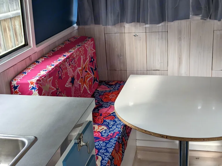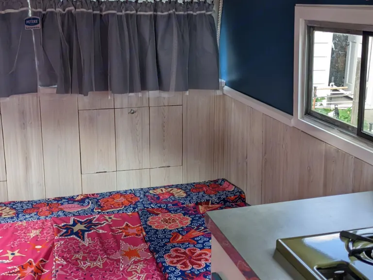 Very small, very cute 2 person classic fibreglass travel trailer.