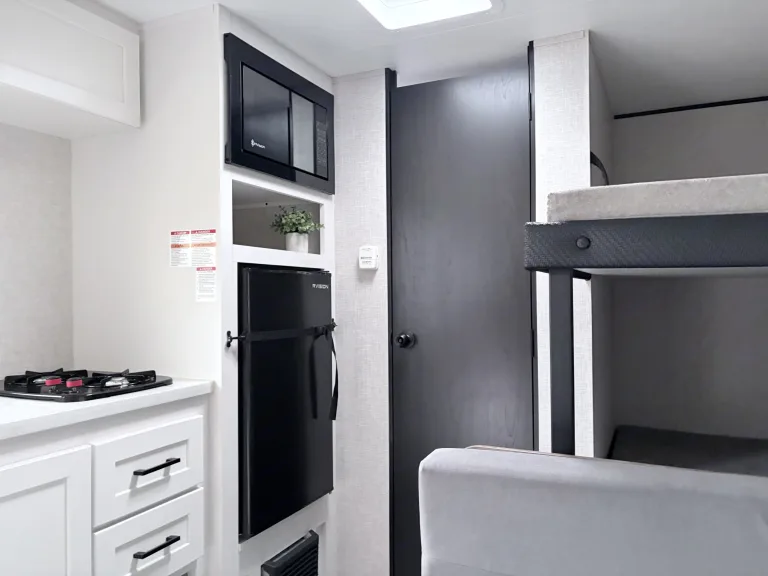 With a private queen, double bunks, and dinette, everyone finds comfy space.