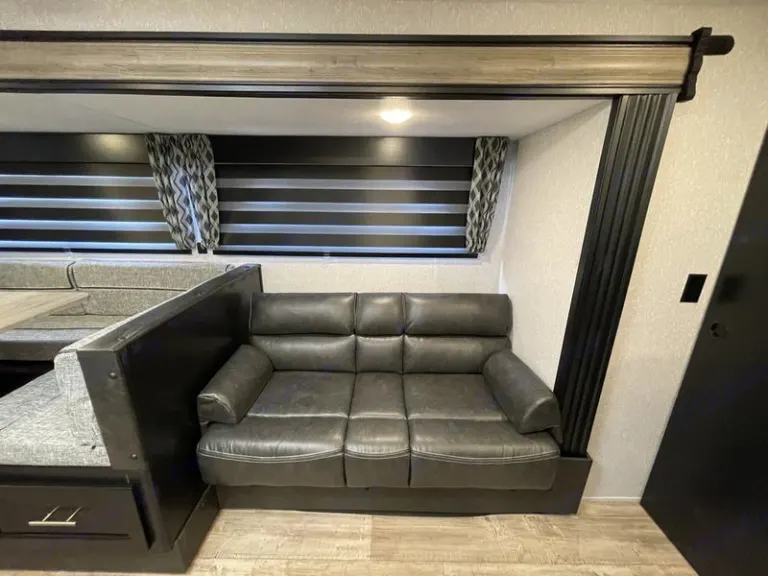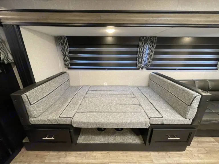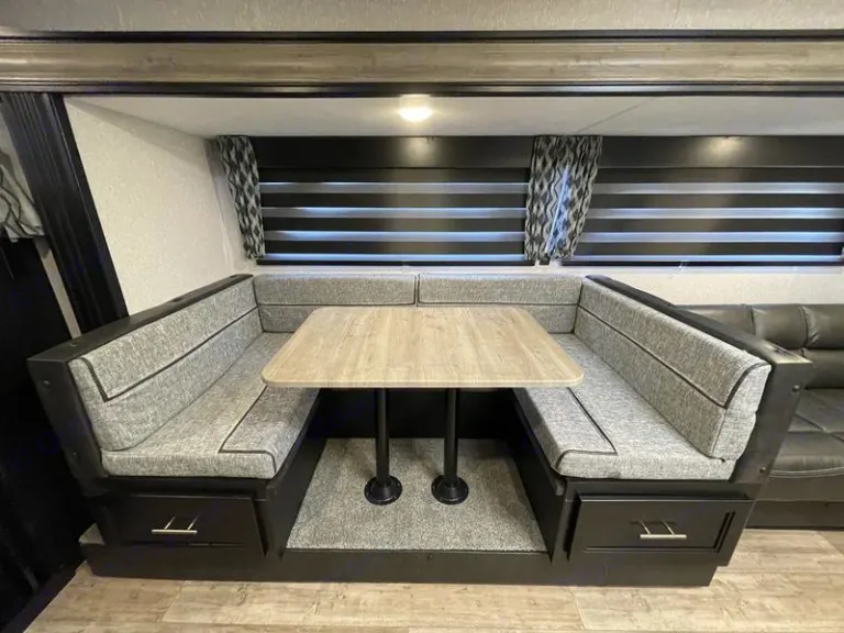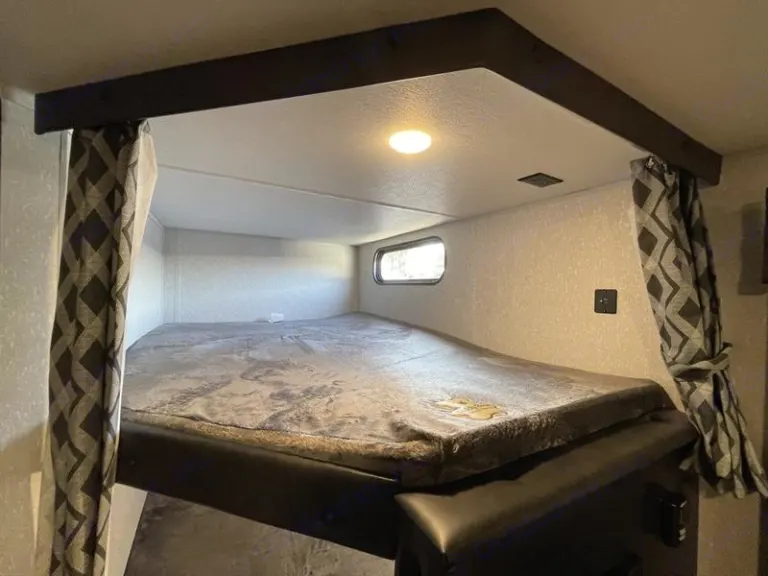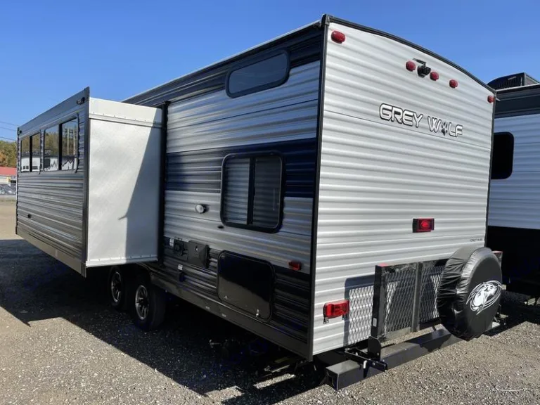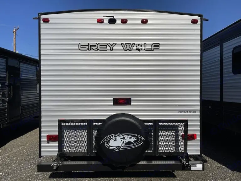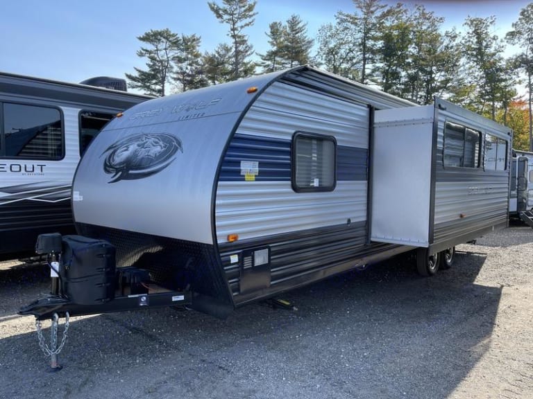 We just purchased this brand new Forest River Grey Wolf that has pretty much every available option for a travel trailer. Such as bluetooth radio both inside and out and a LED smart TV that can be used in the camper or outside. Outdoor kitchen with ice maker, as well as large power awning. The camper comes fully furnished with all amenities that would be needed for an enjoyable trip. Such as, linens, towels, all cooking utensils, coffee maker, and toaster.