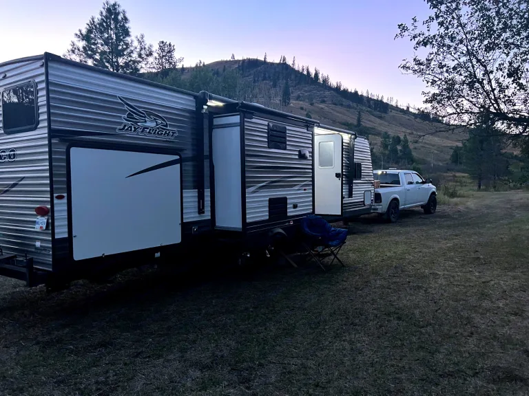 - connected (starlink internet plus extras)We provide the basics, all dishes, kitchen utensils, toaster, kettle, and of course the coffee pot and a large bodum. We also provide sheets, and the basic necessities like toilet paper, paper towel and cleaning supplies.We can provide with a fee some extras if need be. Generator, bedding, extra propane tank and gas, fire bowl, bbq, space heaters, partly lights and more!Flying in for a family reunion? We understand there can be a lot of stressors so we can help alleviate some. Let us take some worries away and pick you up from the airport, stock the trailer with the basics and get you all set up.Some amenity images are stock photos. Will upload actual photos spring ‘23Ce qui est inclusDishes, utensils, pots, pans, small appliances. Dishclothes.Sheets and 4 pillows (no cases)Basic necessities toilet paper, paper toilet, cleaning supplies, sanitizer,Lantern, flashlight, bug spray, basic camping chairs x4, water filters.Loaded with 300 litres of fresh potable water, cleaned and sanitized RecommandationsThis is an amazing family unit perfect for entertaining. It’s big! It’s located close to cutlass lake, Harrison hot springs, camper land, So make sure sites can accommodate 37’ long by 14’ wide. It takes a 30 amp power draw, but if you’re plugging into 15 amp, it will quite possibly trip breakers. The outside kitchen fridge is a true bar fridge and only runs on 110v power. Autres points à signaler- We are pet friendly.