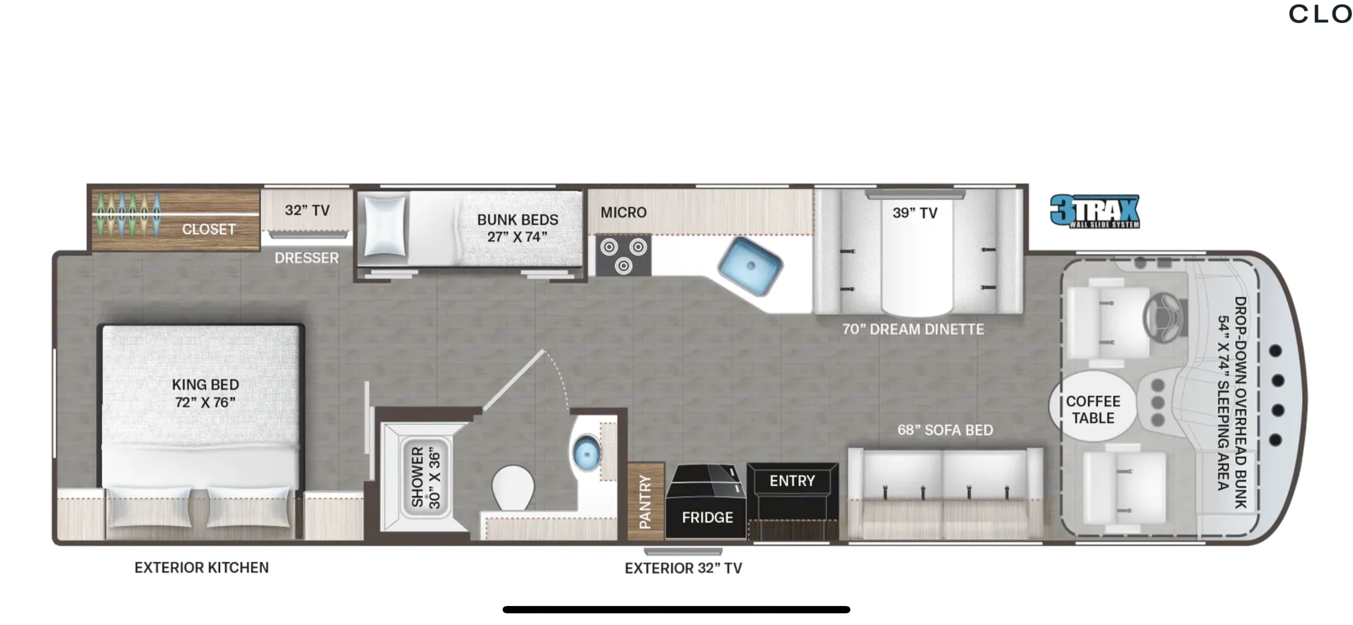 This is our 2022 class a motorhome. We travel together as a family of five with our kids and enjoy the great outdoors. This RV is spacious with one slide out a king bed, an overhead queen bunk, dinette bunkbeds, and a pullout couch. There are smart TVs in the RV and, plenty of room for the whole family Ce qui est incluswe include sheets, all kitchen items, toilet paper, paper towels, bath towels, and different camping essentials. You would need to bring your personal items of clothing and toiletries, but we would supply all of the gear you might need.Autres points à signalerThere is absolutely no smoking inside of the RV and we do not want to allow pets on the furniture.