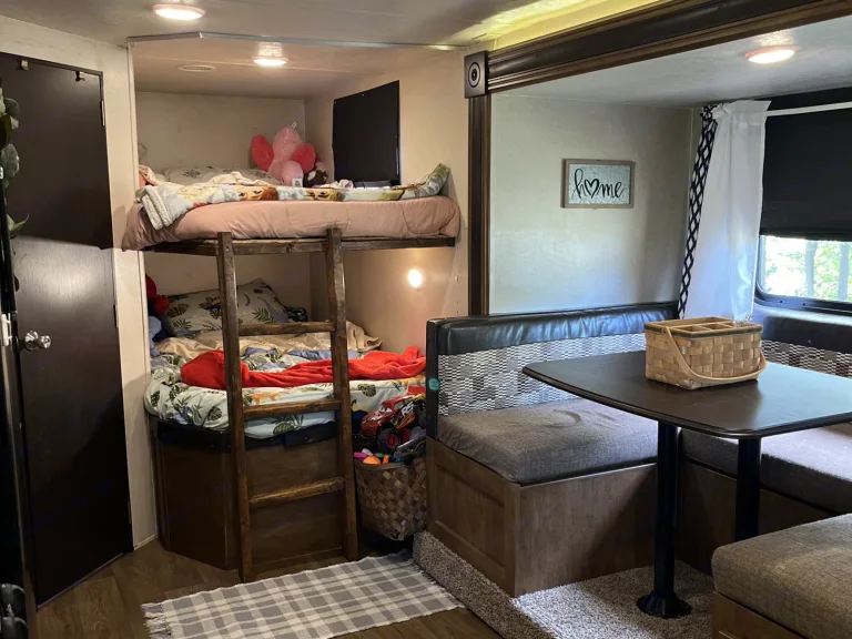 Hassle free camping! We will set everything up for you and make it comfortable and cozy. Our camper has two double size bunks, a dinette that turns into a bed, a jack knife sofa, and private queen bed! We supply a Keurig, K-cups, Ice maker, linens, cooking utensils, dishes and so much more! We want to make this your home away from home for your adventures. Ce qui est inclus• Keurig