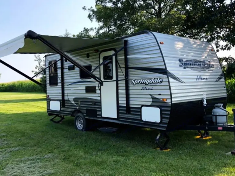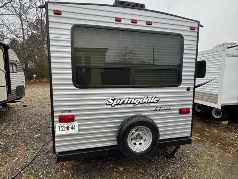2018 Keystone Springdale Summerland Mini-series travel Trailer, 21 feet long from hitch to bumper. Empty weight 3225 pounds. Sleeps 4 people comfortably: Queen size front bed, Large rear U-shaped dinette, that converts into a full-size bed. This is a very comfortable floor plan with lots of room and plenty of cabinets. Everything works perfectly. Rooftop 8000 BTU AC, Furnace, Refrigerator, Stove top, Air Fryer “Oven”, Microwave, Keurig Coffee Machine, AM FM, XM Stereo w/CD Surround Sound and External Speakers, Large Shower/ Toilet Area. Rollout Awning, 4 Leveling Stabilizers, Power Tongue Jack. Fully Ready for Camping. Easy to tow can be pulled by smaller vehicles.