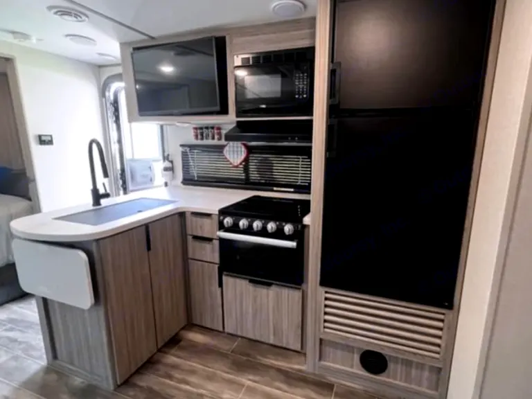 It comes stocked with everything you need to camp! All you need to bring is linens (sheets, pillows, blankets, towels). We provide Keurig coffee maker AND coffee!