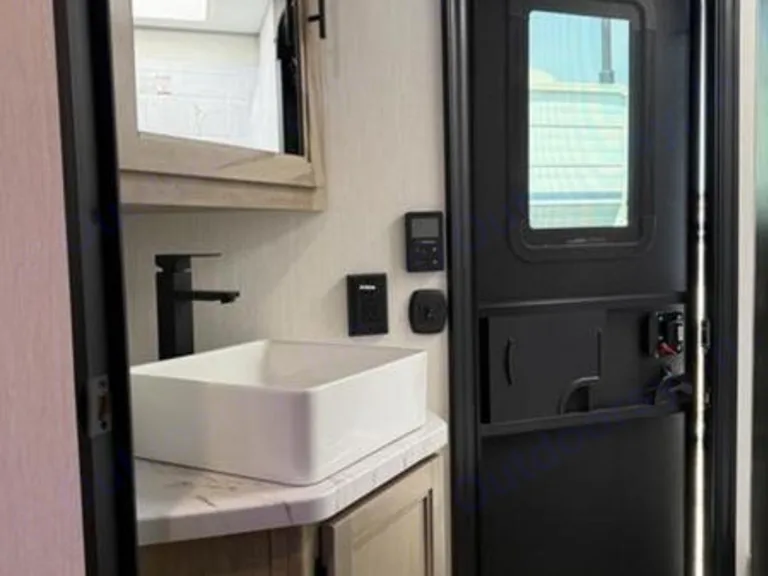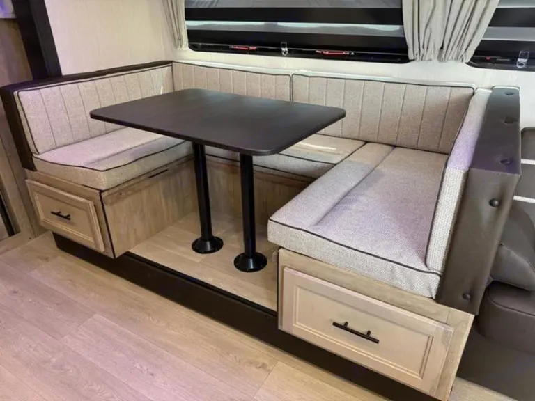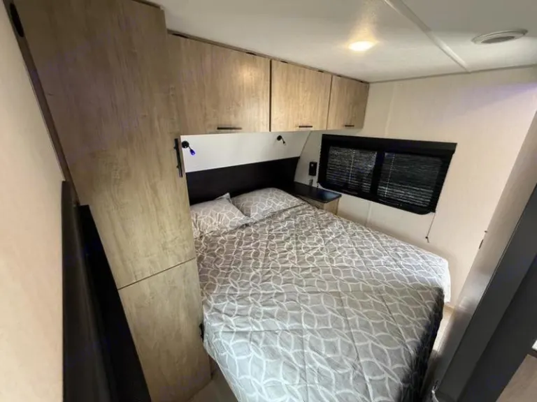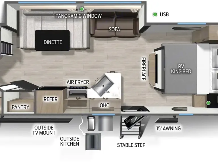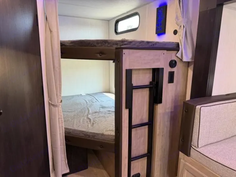 The 26Dbhbl is the ultimate family camper, with a double entry and access to the bath from outside. The double bed bunk, with ladder, provides extra sleeping room for kids and adults. The modern custom kitchen, oversized full pantry and extra-large U-shaped dinette with full length drawers give you more than enough storage for camping gear and supplies. The exterior will provide a great entertaining space with the exclusive Cherokee camp kitchen, exterior speakers and TV bracket as well.