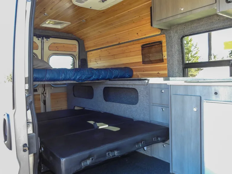 Salt Lake City- SLC Metro/Airport Delivery Pick Up OnlyPlease Note: We require the basic insurance and roadside assistance- both available during checkout.Make/Model: Ram ProMaster 159” High RoofAutomatic Transmission/Front-Wheel DriveFuel Type: Gasoline (13 City/18 Hwy MPG)Solar powered inverterCeiling FanAC/Heater (shore power only)Bluetooth SpeakerSeats: 4 peopleSleeps: 4 peopleMaster Bed Size: 72 inches (length) by 60 inches (width)Memory Foam mattress, Sheets,Rumpl blanket, pillowsSink with Tap & Drain5 Gallon Water/Waste TankStainless Steel Propane StoveRefrigeratorMicrowaveCooking UtensilsCutlery4 Plates, 4 Bowls & 4 CupsPots & Frying Pan3rd & 4th Seats w/ shoulder seat beltsRemovable Dining TableStorage Drawers & CupboardsLED Dimmable Lighting SystemCharging Station for ElectronicsWindow Shades for privacy