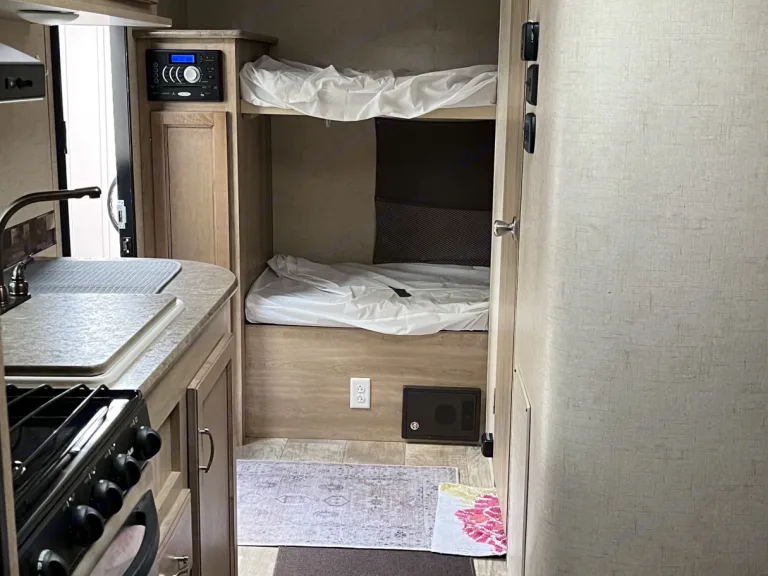 Our clean and cozy 27ft travel trailer is perfect for family getaways or weekend escapes. Sleeps 6 with a queen bed, two twin XL bunks, and a sleeper dinette: full kitchen, bathroom with shower, A/C, and plenty of storage. We offer delivery and setup within Fond du Lac, WI, and surrounding areas — show up and relax!Ce qui est inclus🛏️ Sleeping Arrangements: