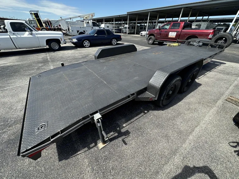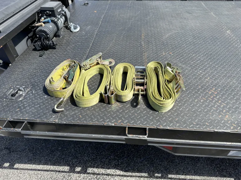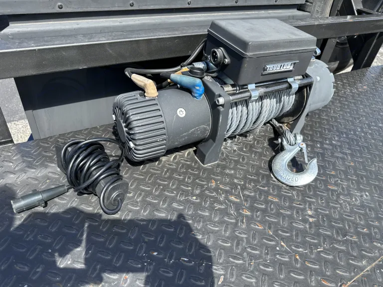 Trailer capable of hauling up to 8000 pounds. Ideal for vehicles, equipment and materials. Comes with winch, straps and ramps.