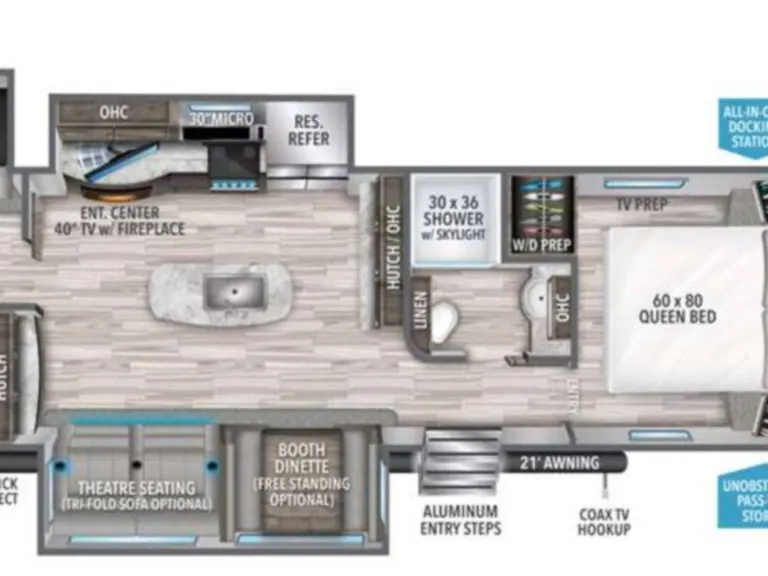 • Families will love this spacious RV with dedicated zones for all to relax.