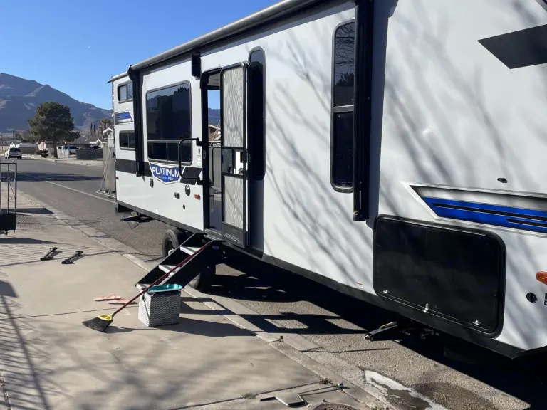 Tanks, Deep kitchen sinks, bigger camper fridge. Ready to go for the weekend or for a whole month. Has all the hooks ups for water and electrical. Also has stands for the ramp if you want to keep the ramp down. Was lived in full time for over a year. Everything works great! Does not have a tv in the camper currently Ce qui est inclusFresh linens, camping chairsAutres points à signalerPlease no smoking in the RV.