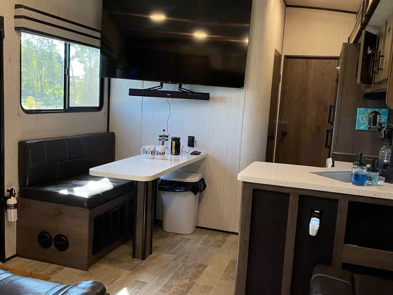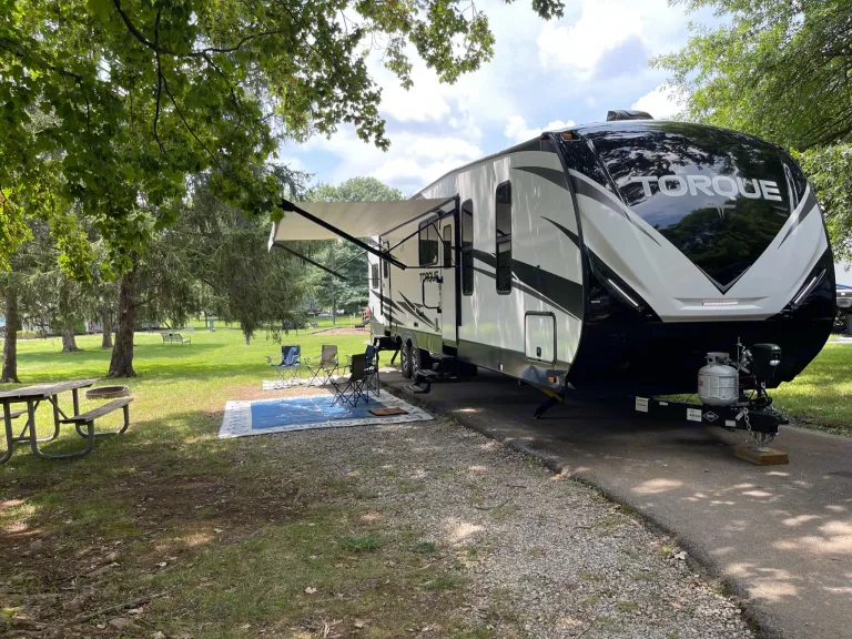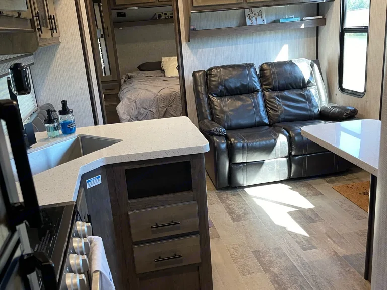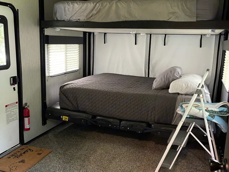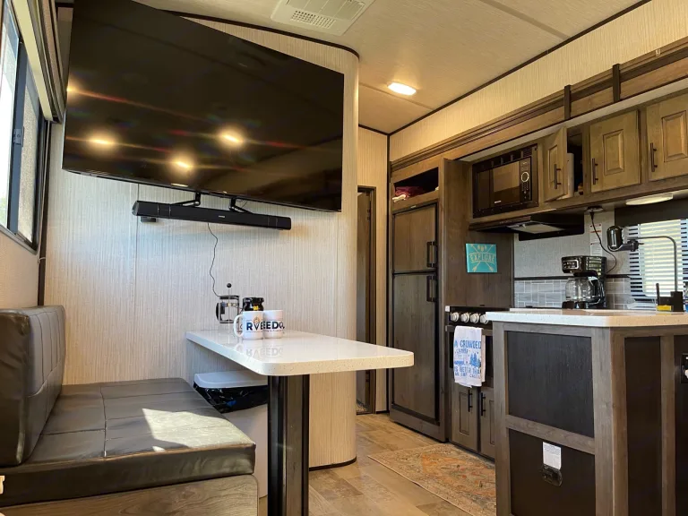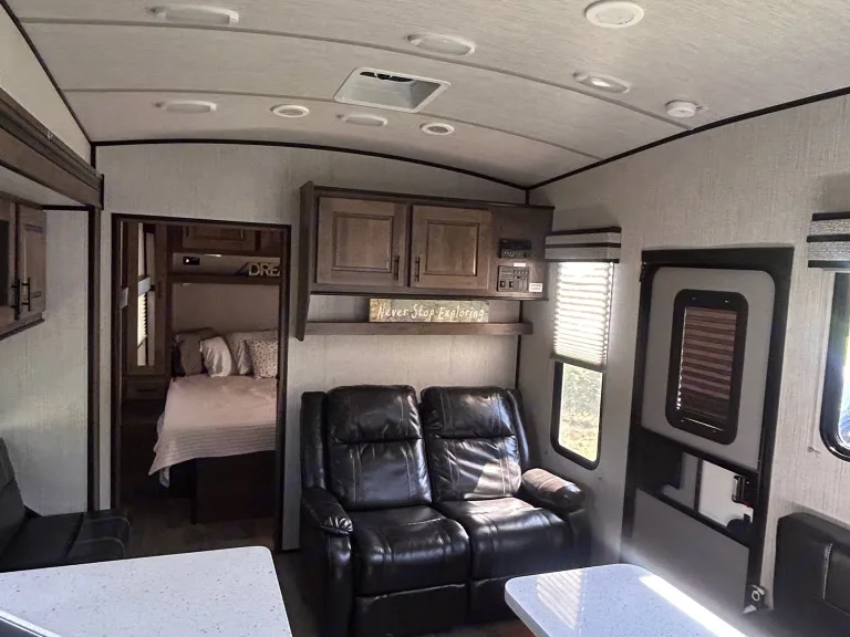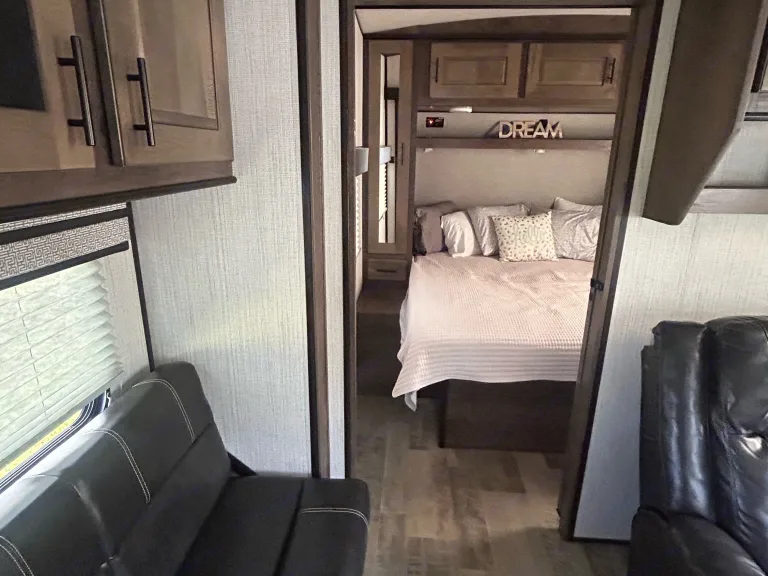 Adventure-Ready Toy Hauler with Comfort to SpareBring your gear, your crew, and your sense of adventure. The Torque T333 is built for guests who want to explore without leaving comfort behind. The rear garage hauls your toys—ATVs, bikes, motorcycles—while doubling as extra sleeping or hangout space with fold-down sofas.Inside, you’ll find a spacious, stylish interior with modern finishes, a comfy living area, and a private king bedroom that feels more like a hotel suite than an RV. The layout offers multiple sleeping zones so everyone gets space to relax and recharge.Love to cook? The kitchen comes ready with a full-size fridge, stovetop, microwave, and tons of prep space—perfect for everything from campsite breakfasts to game-day snacks.Enjoy the great outdoors with indoor perks like A/C, heat, slide-outs for extra room, and optional outdoor kitchen and entertainment setup. Whether you're headed off-grid or staying at a full-hookup resort, this RV gives you the best of both.
