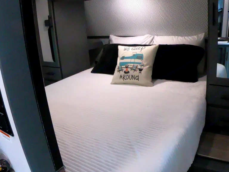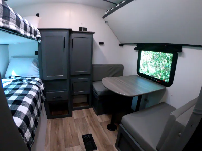 - bedding and pillows for queen bed, bunks, and dinette