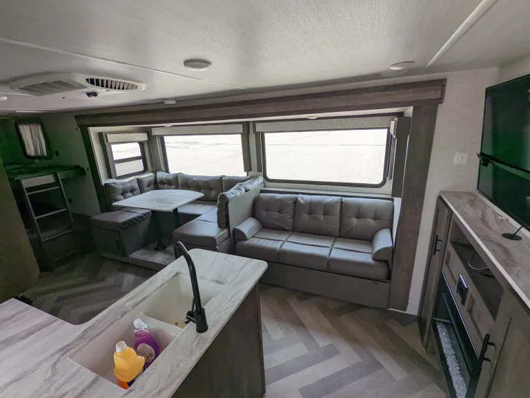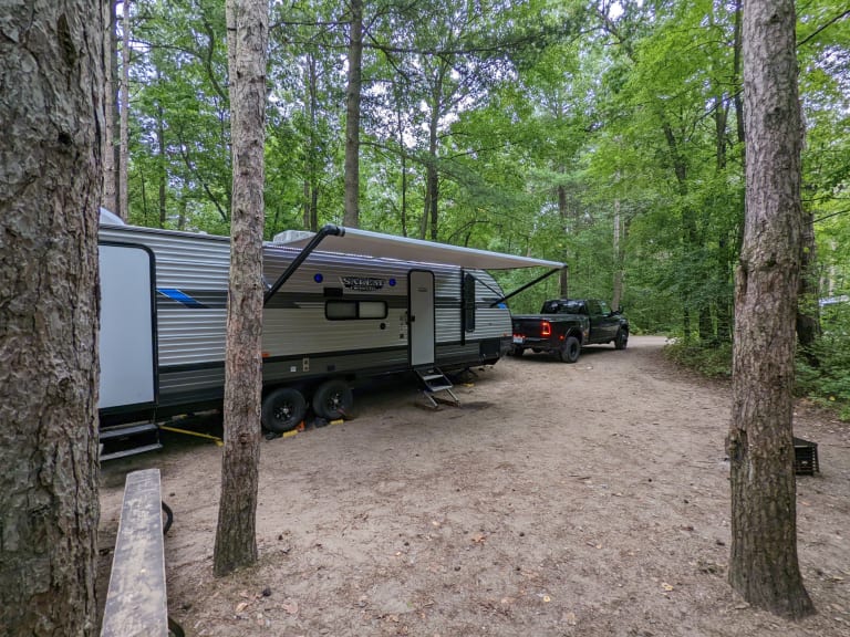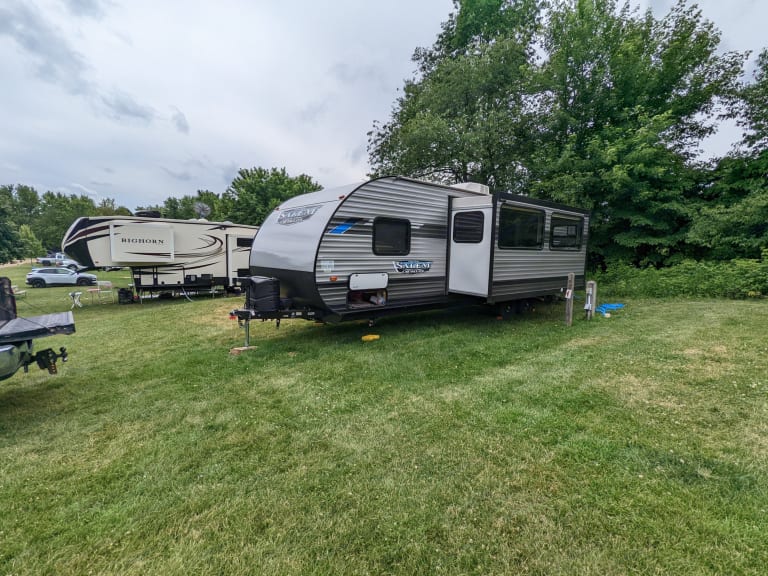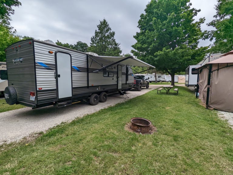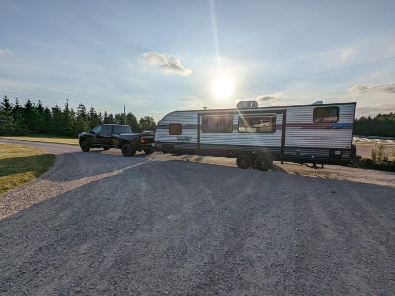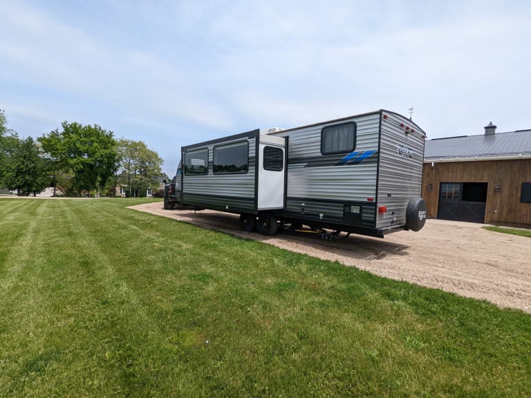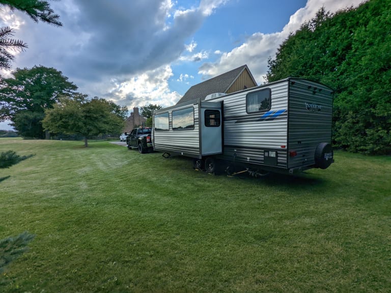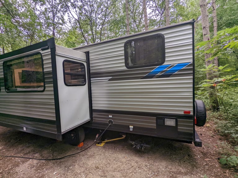 This ultra modern RV trailer offers a bright and spacious layout making it an amazing home away from home.This trailer offers the space of a park model and yet is extremely lightweight and easy to tow. It's wider wheelbase and lightweight construction makes it more stable than others in it's class and easy to tow with a half ton pickup or a full size SUV.If you will be off-grid, we have a generator available.Delivery is available anywhere in Ontario if needed.If you have any questions, feel free to send a message.Let the fun start today - put your booking request in today!Ce qui est inclusTwo camping chairs are available.Autres points à signalerNo smoking of tobacco, cannabis or other please.