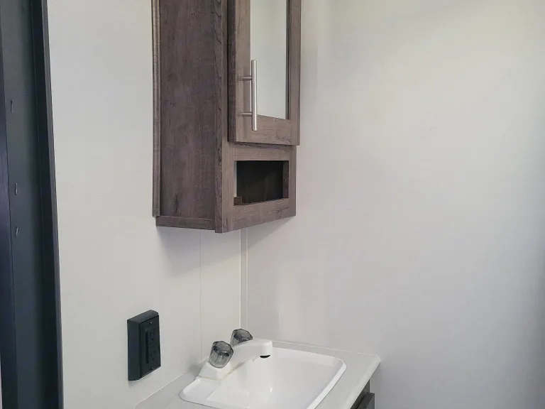 Interior: Birch cabinetry, 78-inch sidewall height, and high-performance vent fan.