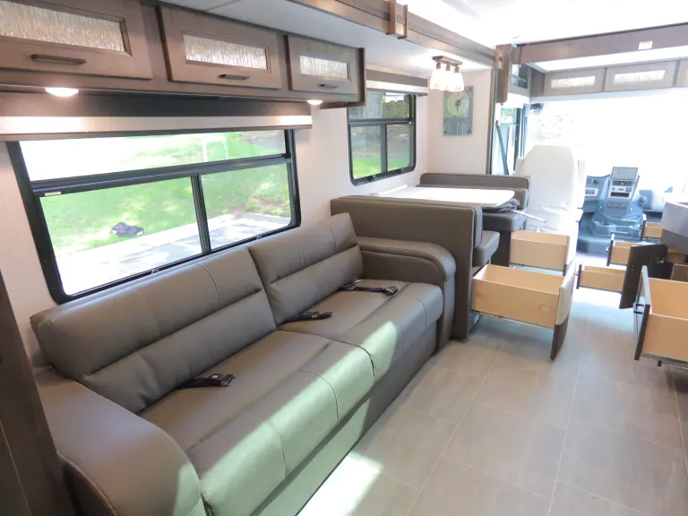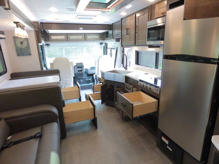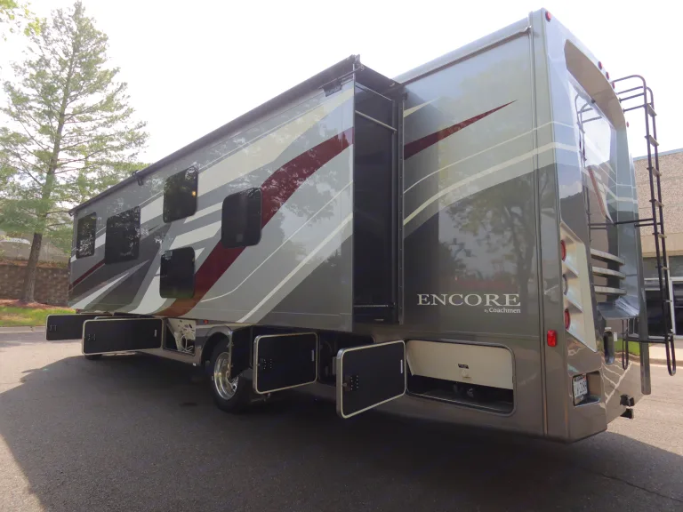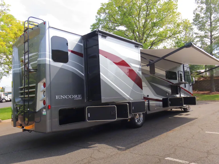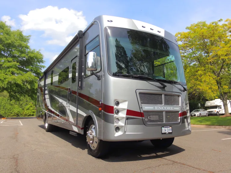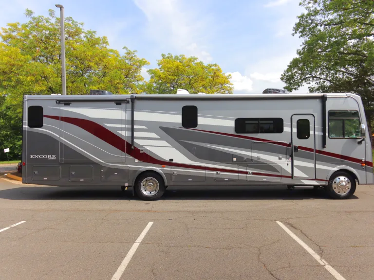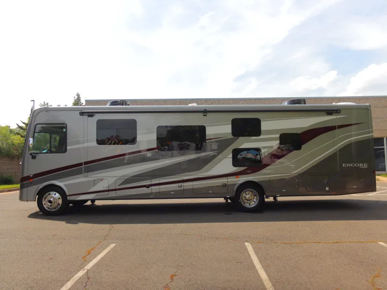 Every adventurer needs a base camp. A long day exploring and enjoying the great outdoors can wear a traveler out. That's why, when you're indoors, you deserve to relax. The Encore Class A Motorhome offers a spacious interior, complete with all the comforts of home, to let you do just that.The Encore offers the look, feel and drivability of a premium diesel machine—all without the diesel price tag. What's more, the gas-powered Encore is built for the long haul. Constructed with a fiberglass roof, 22.5" wheels, aluminum rims, and stackable washer/dryer prep, it's an unbeatable combination of power, luxury, and livability.The interior of the Encore Class A Motorhome is engineered for maximum comfort. Spacious and stacked with amenities, it has everything you need to relax and recharge. That includes stainless steel appliances, 15,000 BTU ACs, king bed, drop down cab-over bunk, and more standard features than ever before.
