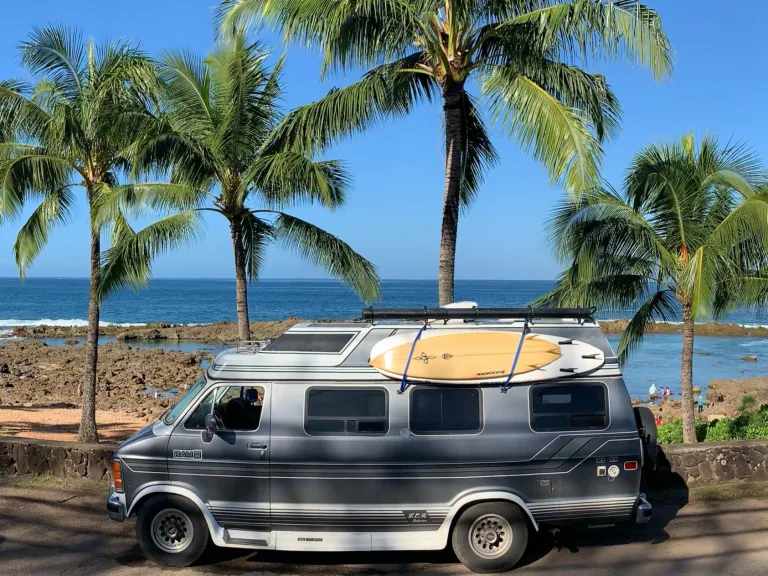 Where modern build meets a 90's vintage beach classic...Come enjoy our self-converted campervan on Oahu, Hawai’i, with Unlimited Miles!NirVana is completely self-sustainable with solar-powered electrical system, ARB awning, indoor toilet and shower combo, outdoor shower, a fully equipped kitchen with deep sink and modern faucet, induction cooktop, full-size fridge and freezer.Feel cozy with dimmable LED lights and rusty wood ambience. Enjoy plenty of storage with large sliding drawers for all your clothes. Couches that convert to a full-size bed (6' long, side to side), modular table and rotating captain seat, a built-in Maxxair fan and an additional fan for sleeping.She also comes with all bedding including 2 beach and 2 shower towels, a small camping table.Cookware: Pots, Pans, French-Press, Coffee Mugs, Small Blender, Spices, Spoons/Knives/Forks, Spatula/Tongs, Cutting Board, Wine & Bottle Opener, Scissors, Plates/Bowls/Cups, Drying Mat, Hand/Dish Soap & Sponge, etc. Portable Vacuum and Dust Pan/Broom, First Aid Kit, Smoke/Carbon Monoxide Detector, Fire Extinguisher & Jumper Cables Ce qui est inclusShe comes with: