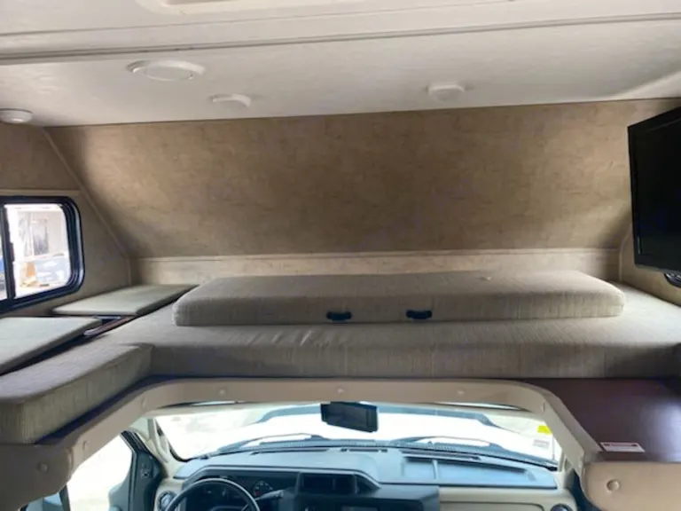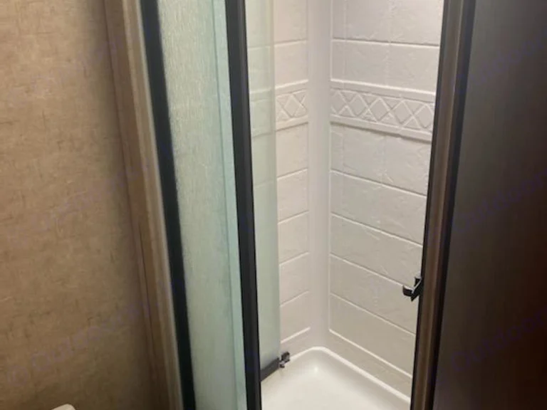 Inside Shelly, discover your very own home on wheels. With three sleep areas – a queen bed, over-cab loft, and convertible dinette – Shelly accommodates families and friends. A sliding door offers privacy to the rear bedroom, complete with a queen bed slide-out and full closet slide-out. The adjacent bathroom ensures convenience, with an additional privacy door.Off-Grid Versatility: