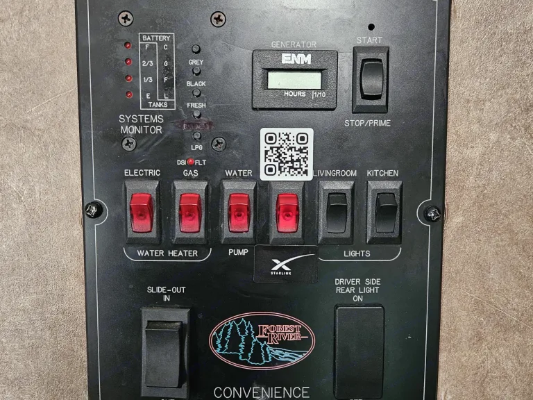 Autres points à signalerPlease no smoking!Retract awning when unattended or wind above 15 mphIgnition must be OFF for slides to go in or out!Inverter is under bed. If the inverter or battery charger is not working the inverter may need to be reset (turn off, turn on). Otherwise, it can be controlled from the touchscreen.