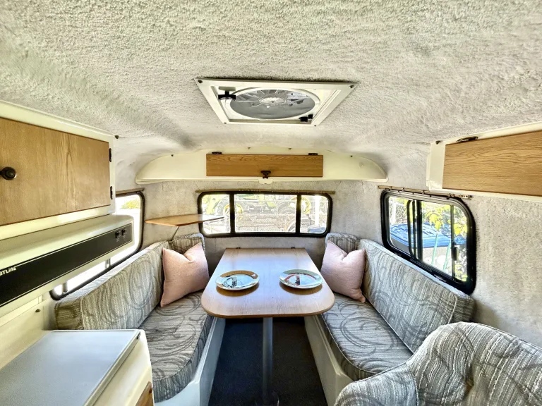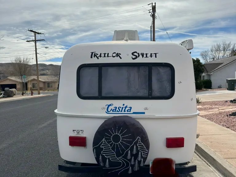Trailor Swift is an adventurer's dream camper. Akin to an ocean vessel, this is 16ft of molded fiberglass to keep it water-tight. A fish out of water, but loves the land.-Wet bath (shower and toilet in same area) equipped with shampoo, conditioner, and body wash.