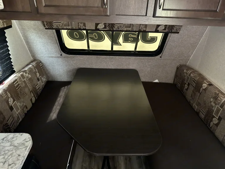 Convertible Dinette: The front dinette converts into a bed, offering both seating and sleeping space without sacrificing room.
