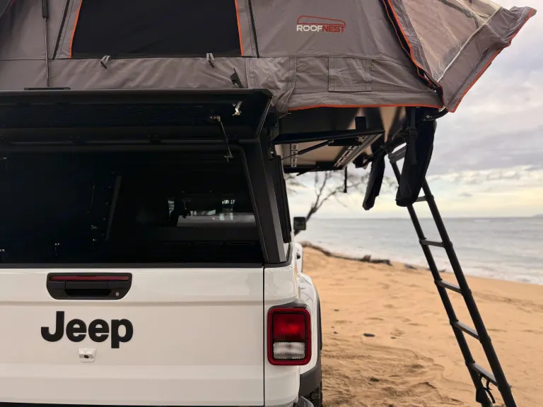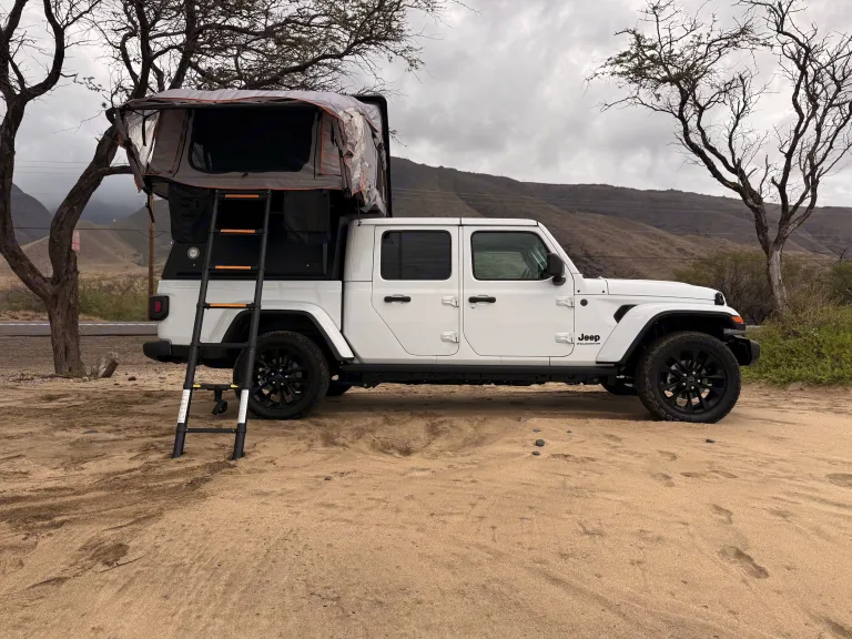 Discover Maui's wild side with this 4x4 Jeep Gladiator and comfy rooftop tents.