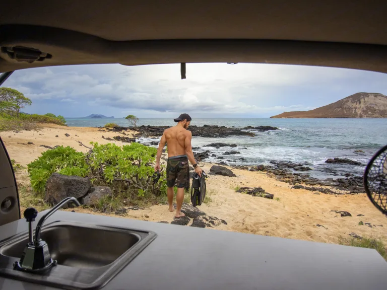 • Malaekahana Beach Campsite is #1 for guests and only $10 a night. There are 16 other campsites available on island but please note that applying for a campsite permit should be done well in advance of your stay.Free parking for overnight sleeping is available island wide. Pay attention to street signs as they indicate restrictions and rules. Specific addresses will be kept confidential until just before you arrive as we want to keep local O’ahu spots special to our Glamper community.Bathrooms, Shower & Sink