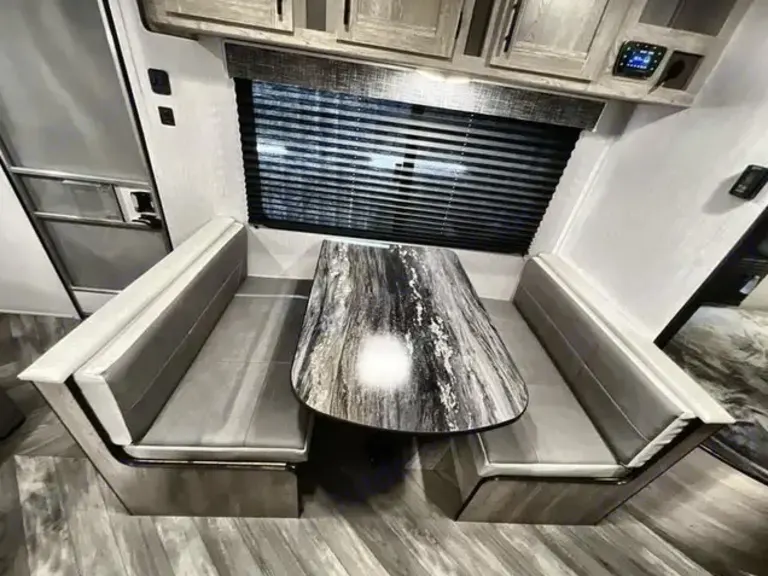 Enjoy versatile sleeping with a queen bed, double bunks, plus sofa and dinette beds.