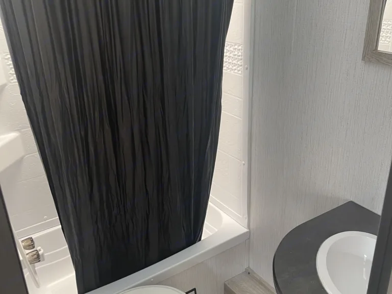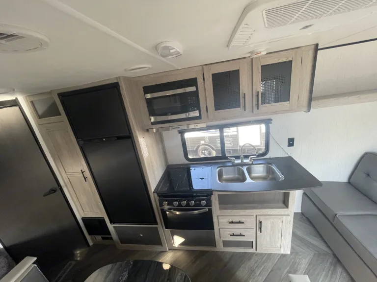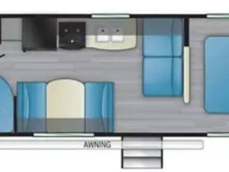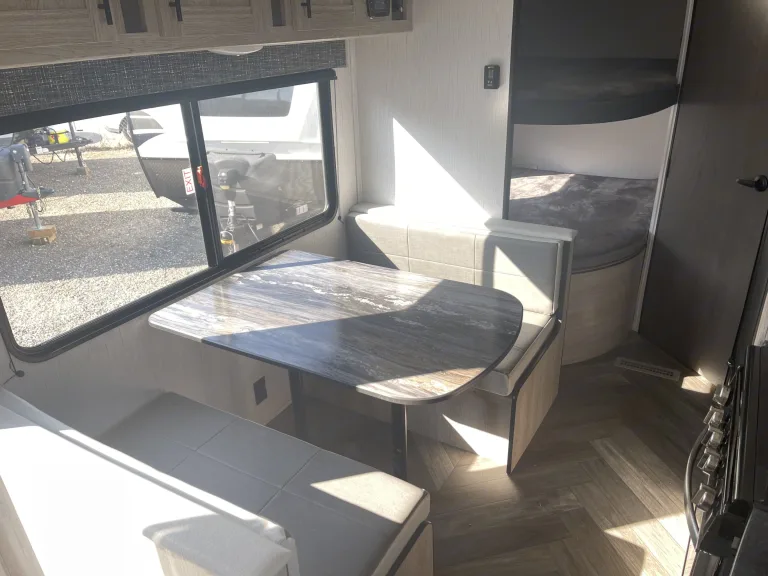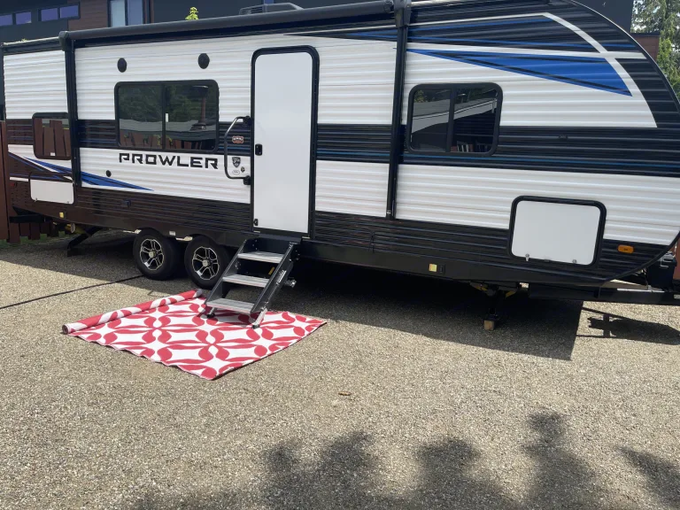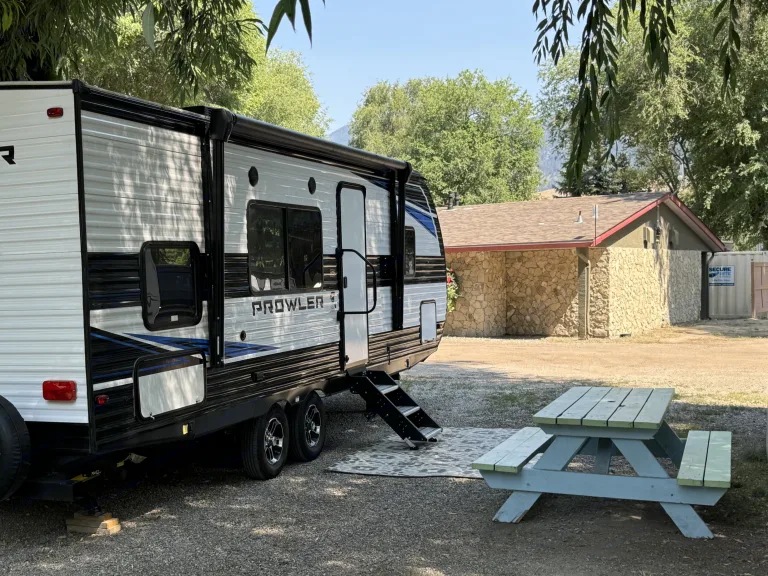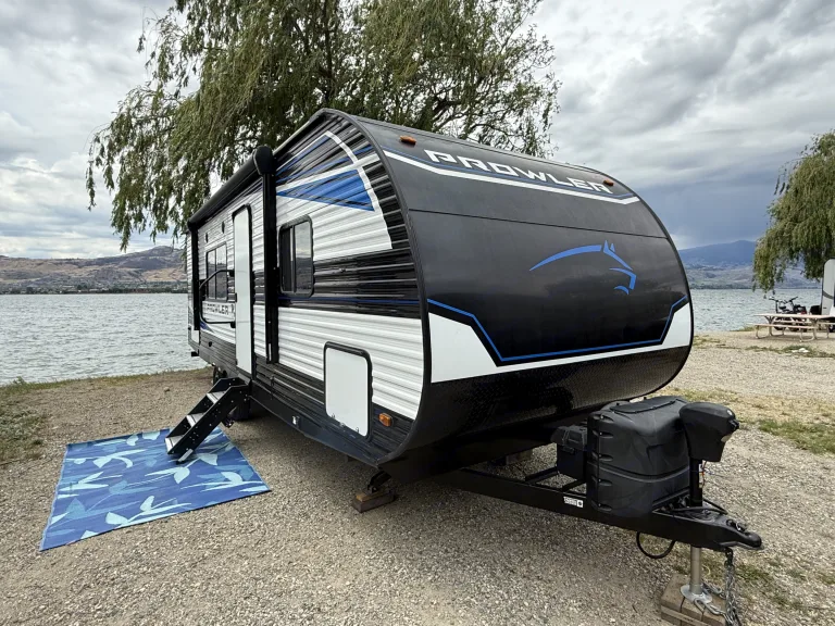 Stay comfortable year-round with AC/heater, hot water, and easy campsite hookups.
