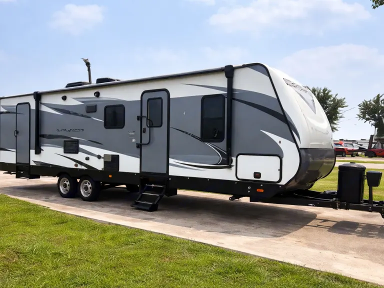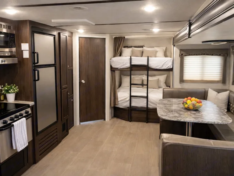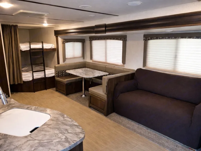 A spacious slide-out, private master, and full-size bunks provide ample room.