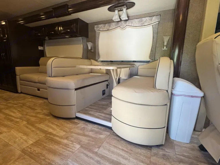 We feel like we're home no matter where we camp! When you walk into this gorgeous rig you will see why! All NEW upholstery. The Brand NEW top of the line King Size bed will leave you refreshed for waking up on a crisp morning with the fire place going while sipping on your morning coffee. This bed is like no RV bed you'll ever experience! Gathering around a campfire while watching family movies on the outside Smart TV. Making memories with all the luxuries of home and then some! This unit has it all. So pack your bags and let your adventures begin!
