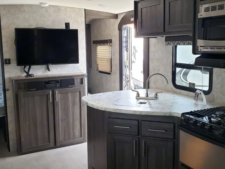 Dry weight 5,681 easy towingYou are also welcome to bring along your dog with approval for a small nightly fee.Holiday and peak season rates are slightly more and may have 3-4 night minimumsCe qui est inclusOut door Rv mat, broom and dust pan.