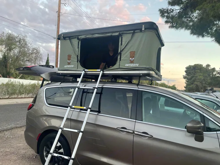 Automatic transmission, Apple CarPlay/ Android Auto, Bluetooth, USB input, AUX input, GPS, Backup Camera, 7 Seater, antidote top tentCe qui est inclusGenerator, 4 mesh windows which can all be used as doors., Comes with multiple internal, storage pockets and 2 condensation vents, Comfortable 2-inch mattress pad with a, removable and washable liner, Heavy-duty cover with extra secured outer D-ring straps, Sliding and extendable ladder, Rainfly for extra protection in wet conditions (use with awning poles or with included tie-downs), JoyTutus SUV Air Mattress, Condo RTT (Roof Top Tent) Rubber mounting spacers to help install and/or cushion the ride, and Solar and battery-powered lanternAutres points à signaler3 sleeps on top limit 160 lbs each adult then 2 in the car
