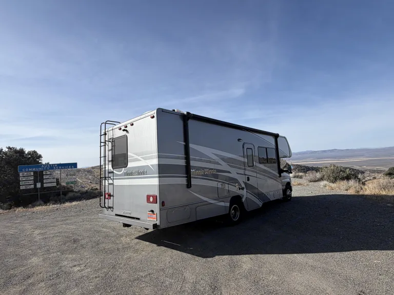 The RV is parked at Honey Bee RV Storage (5225 Rawhide St, Las Vegas, NV 89122), just 6.8 miles from LAS Airport, making pickup very convenient.